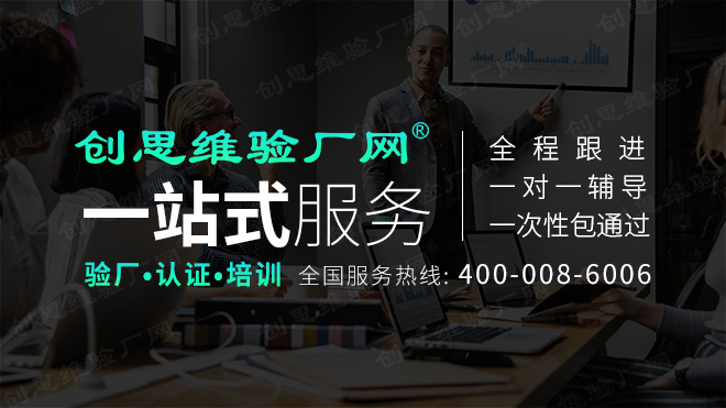 創思維的服務宗旨“專業輔導+良好人脈”雙保險確保工廠100通過驗廠,專為工廠解決驗廠中遇到的各種難解之題;強大的顧問團隊,優質的服務口碑,驗廠關系通全國、可提前安排審核,現場公關、審核時間查詢、精準率100; 選擇創思維-任何原因導致驗廠不通過,我們負責到底!