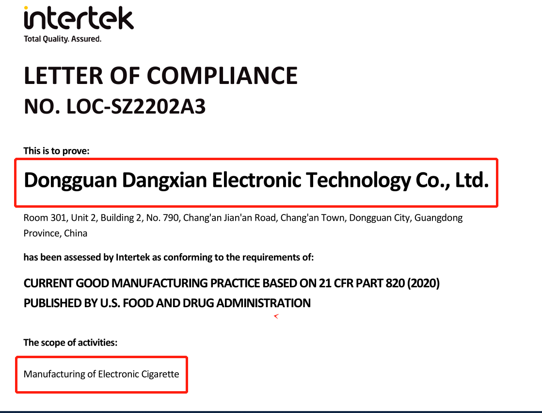 當先電子2022年在創思維中國驗廠網輔導下順利通過電子霧化器GMP-820認證審核。