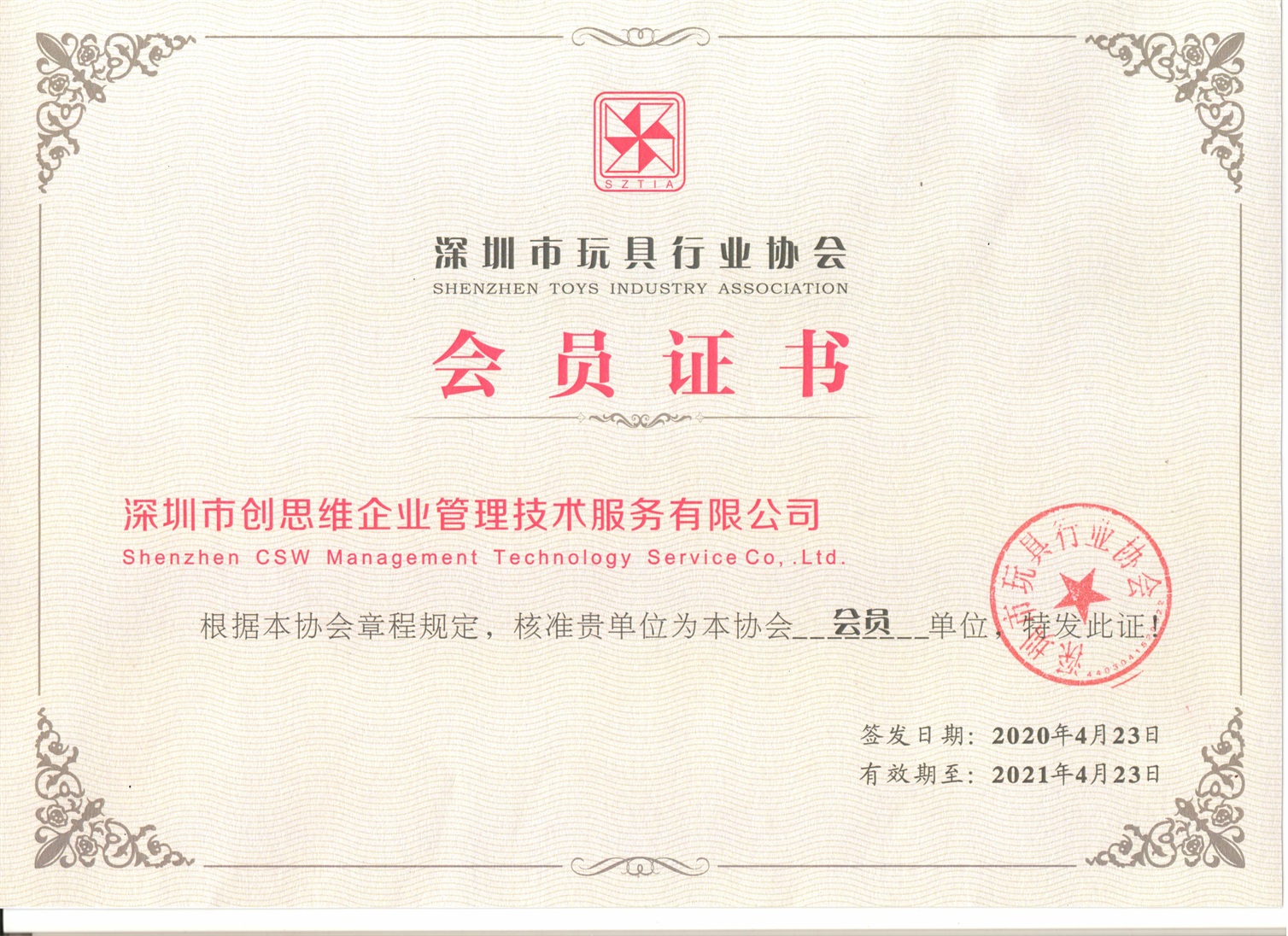 “電子商務協會會員單位”榮譽證書